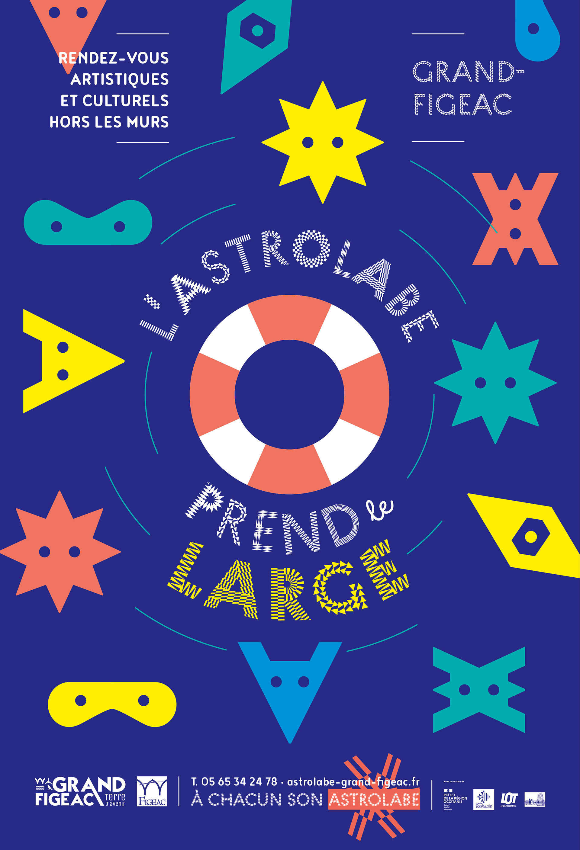 Saison estivale de l'Astrolabe Grand-Figeac hors les murs. Visuel et déclinaisons.